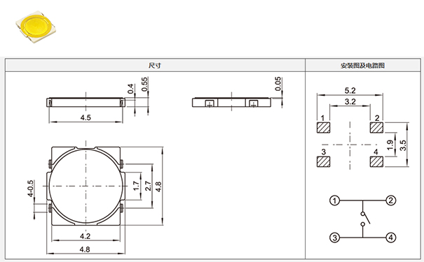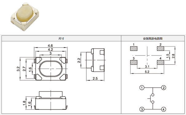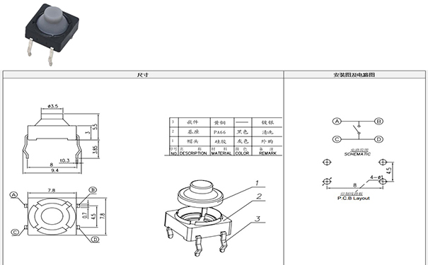 此款開關多用于便攜式手電筒,電子筆的電源啟動按鈕上。
