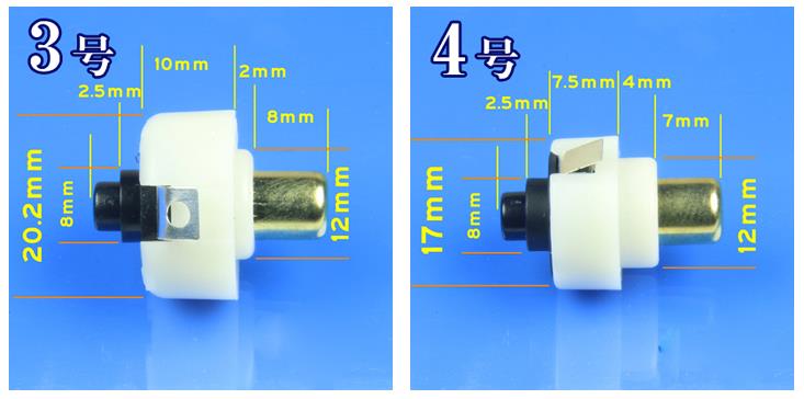 這兩款多用于迷你隨身帶的強(qiáng)光手電筒底部的按鍵開關(guān),有自鎖功能。
