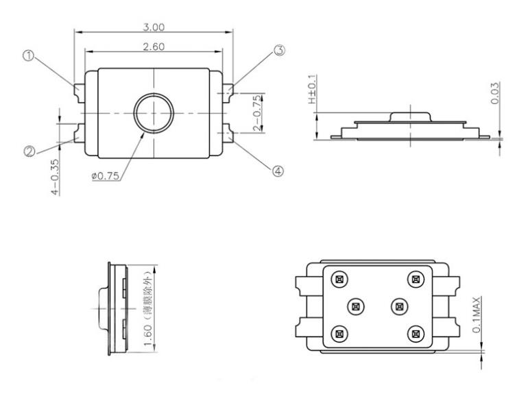 外觀尺寸 (LxW) (mm): 2.6mm×1.6mm 2.6mm×1.6mm