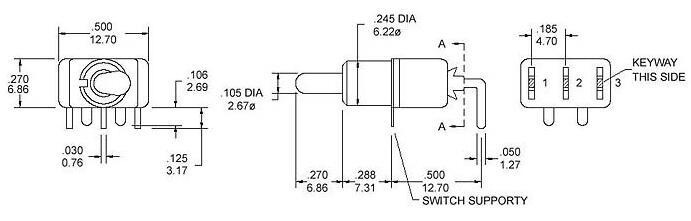 鈕子開關MTS102C3彎腳